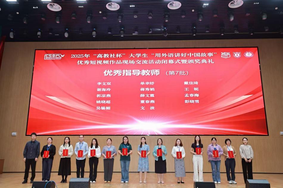 9月19日至21日,2025年“高教社杯”大学生“用外语讲好中国故事”优秀短视频现场交流活动在武汉市江汉大学举行。我校参赛团队作品《一脉黄酒香,杯盏融中外》荣获职业组全国一等奖,指导教师单幸妤获评“优秀指导教师”,学生团队成员为戴小红、张凯雁、叶陶、黄宇婷。