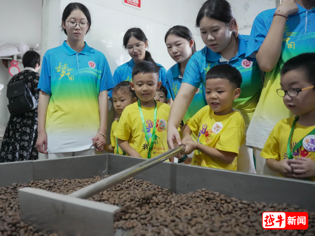 在现场记者看到,每位幼儿手持趣味“闯关卡”和明信片,边探秘边记录,他们在自然中学习,在发现中成长。从林间到工厂,大学生们用儿童化语言讲解香榧从采摘到炒制的蜕变过程。当炒制锅中飘来阵阵焦香,孩子们真切感受到小小香榧背后凝结的劳动智慧。孩子们用画笔将榧叶、榧果、树皮纹理绘成DIY徽章,把自然的馈赠定格为可触摸的纪念。
